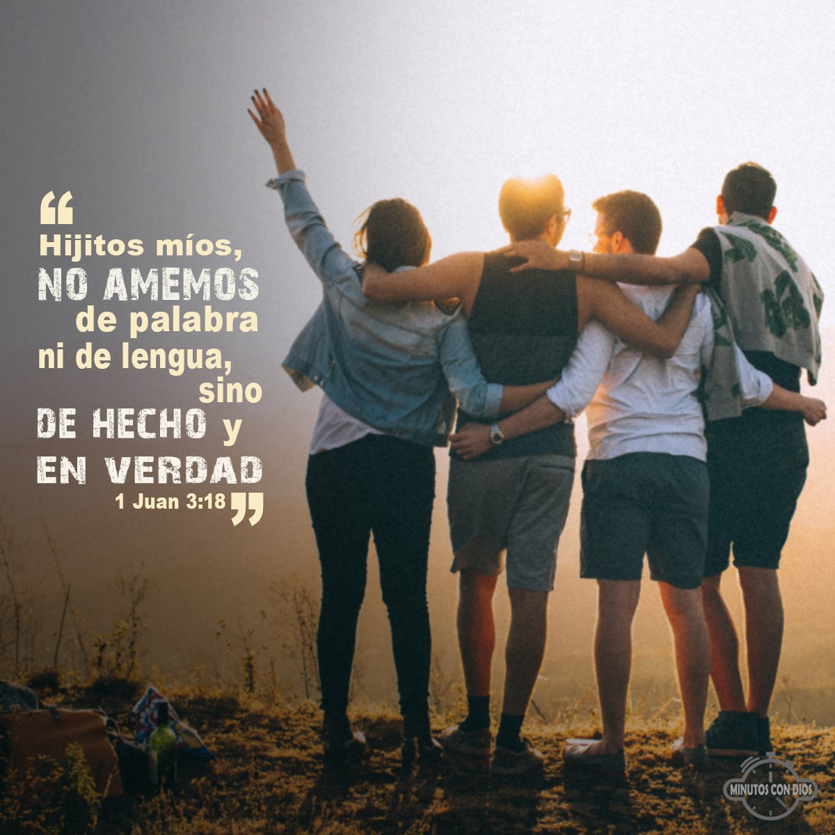 “Hijitos míos, no amemos de palabra ni de lengua, sino de hecho y en verdad.” 1 Juan 3:18...